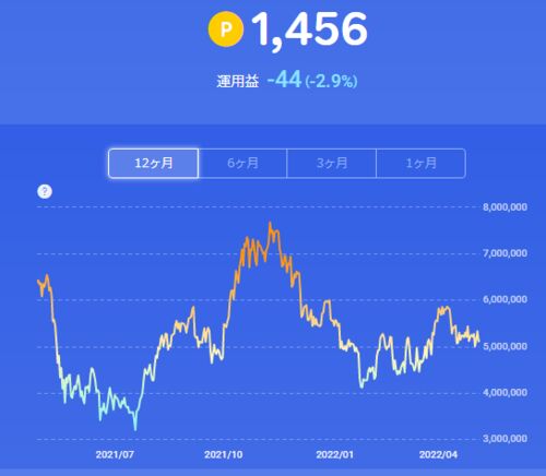 こんばんは さて4月も最終日ですが今月2度目のビットコイン追加投資報告です。 21/11/14に100ポイント分で投資開始 22/2/15時点でトータル1000ポイント分投資(評価額940円 -6.0%) 22/3/12に100ポイント追加投資 22/3/23に100ポイント追加投資 22/3/30に100…